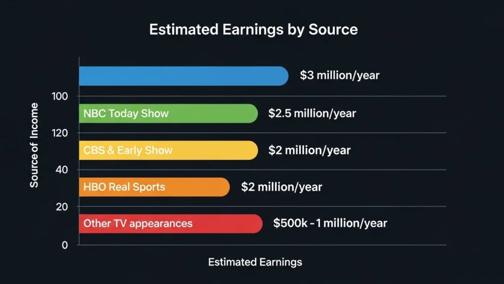 He earned millions annually from his work at NBC, CBS, and HBO. His salary reflected his high-profile roles in news and sports broadcasting.