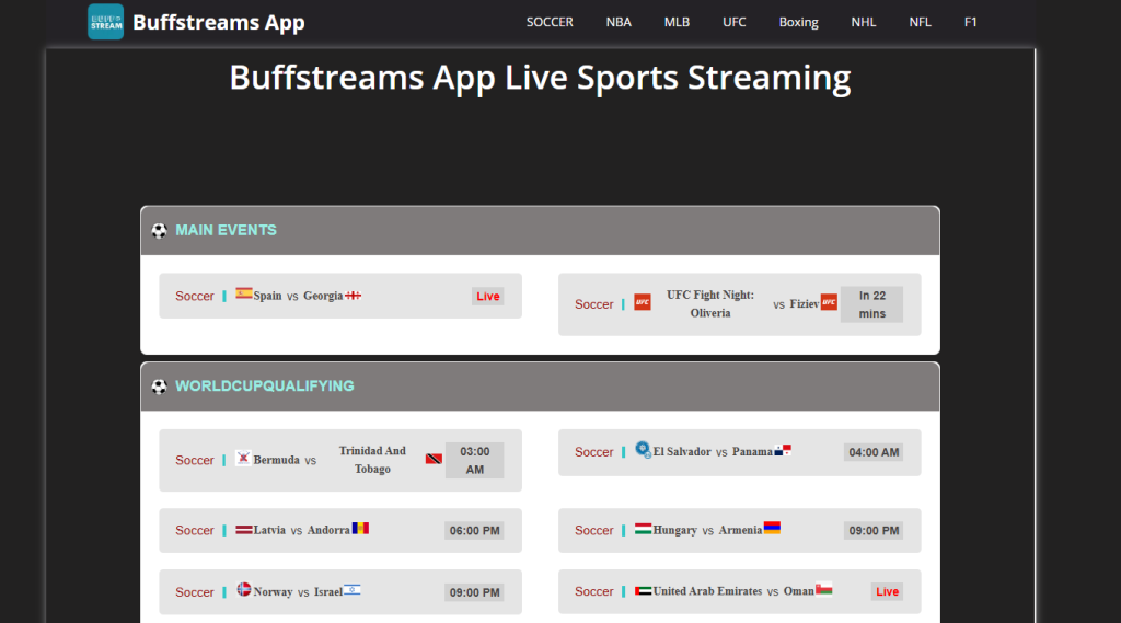 BuffStreams | Football, MMA, basketball | HD quality, updated links | Low | Cross-platform |