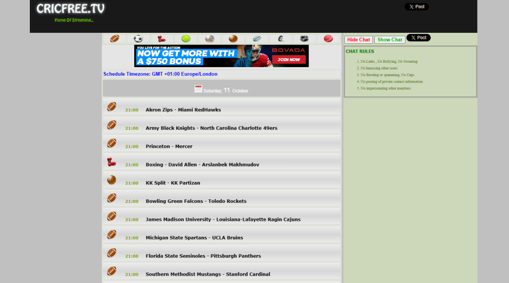 LiveTV.sx offers multilingual coverage and provides both live matches and replay archives. It is recognized for its responsive interface, low buffering rate, and real-time scoreboards. Users can follow multiple leagues, including Champions League football, NHL, and ATP tennis. LiveTV.sx also integrates chat sections for live discussions.