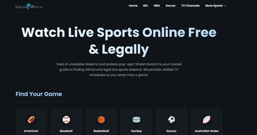 Stream2Watch aggregates live sports channels from around the world. It offers streams for football, boxing, hockey, and snooker through external sources. The site’s advantage lies in its extensive sports category list, though users may encounter pop-ups before reaching active links. Stream2Watch remains one of the most consistent multi-sport portals.