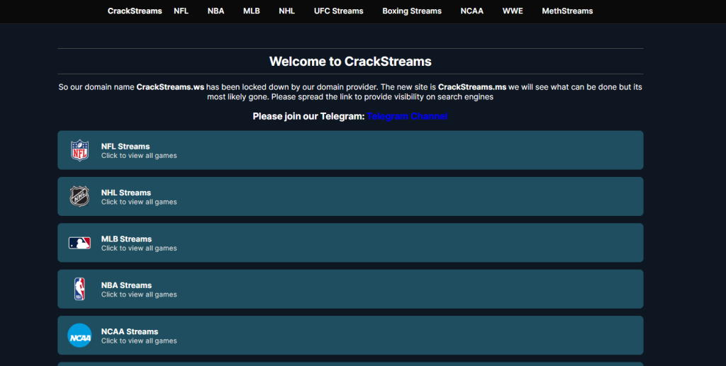 CrackStreams focuses on combat sports and American leagues. It streams UFC fights, boxing events, NBA games, and NFL matches. CrackStreams updates links before every major event, ensuring fast access and HD playback. Its simplicity and frequent updates make it a go-to option for fight fans.