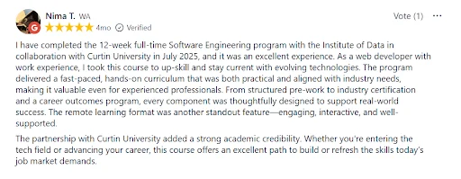 The bootcamp structure keeps you active. The pace is fast and direct. You learn concepts and apply them right away. You attend live classes, work in groups, and complete weekly tasks. Many students like this because it creates discipline. It also makes learning feel more engaging.