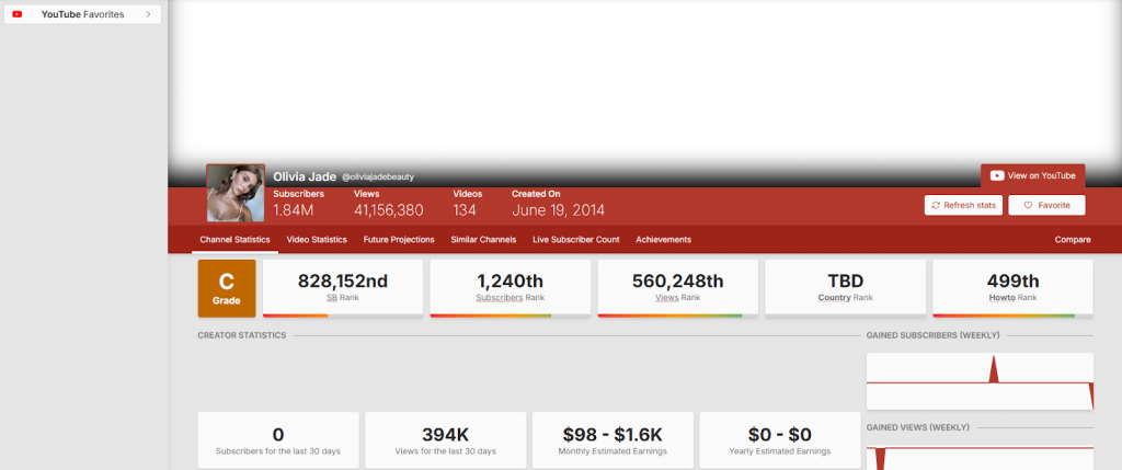 Note: These figures are estimates derived from Social Blade analytics for Instagram and YouTube. Other than that, however, her fashion campaign earnings are not public; these are estimated on the basis of her online presence. Images below highlight her real-time stats: