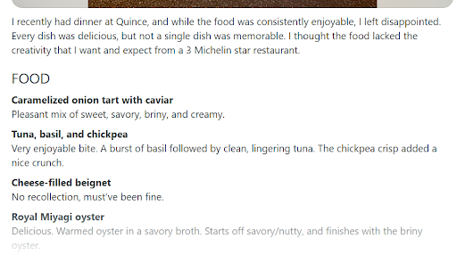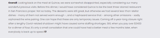 Customers Reviews On Quince Restaurant