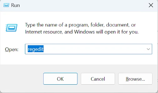 Press Win + R, type regedit, and press Enter.
