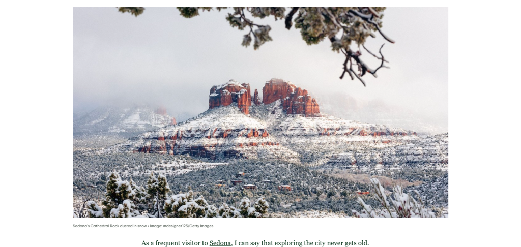 - Climate advantage: While nearby destinations like Flagstaff experience heavy snow, Sedona remains mostly dry and sunny.