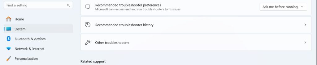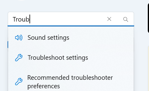 2. Search for troubleshooting or troubleshooting settings and click on it.