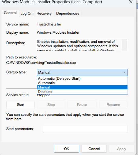 By default, Windows Modules Installer runs automatically. Switching it to manual mode can reduce unnecessary usage.