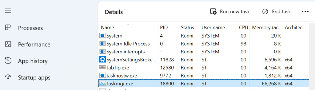 1. Press Ctrl + Shift + Esc to open Task Manager and click on details.