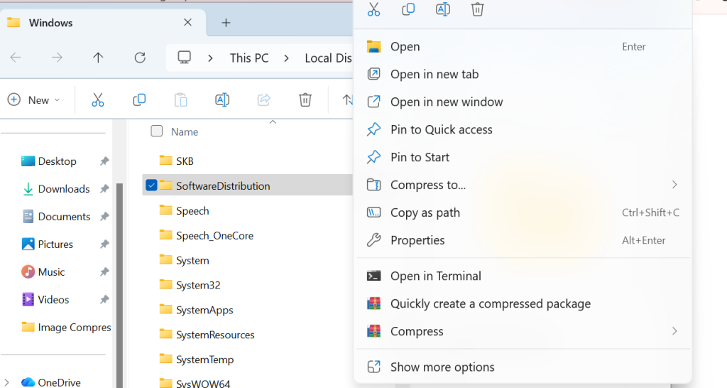 The SoftwareDistribution folder stores temporary update files. Corrupt files inside it can trigger Windows Modules Installer Worker 100% disk usage.