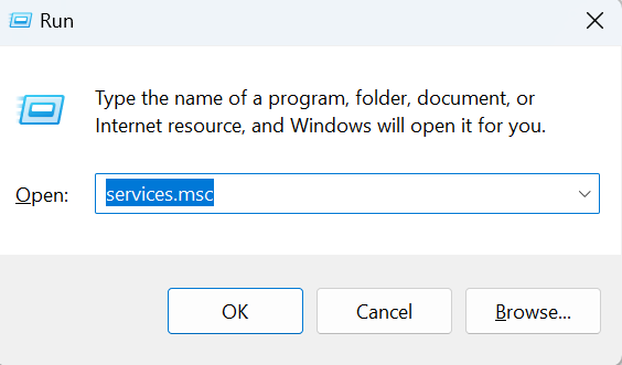1. Press Windows + R to open the Run box. Type services.msc and press Enter.